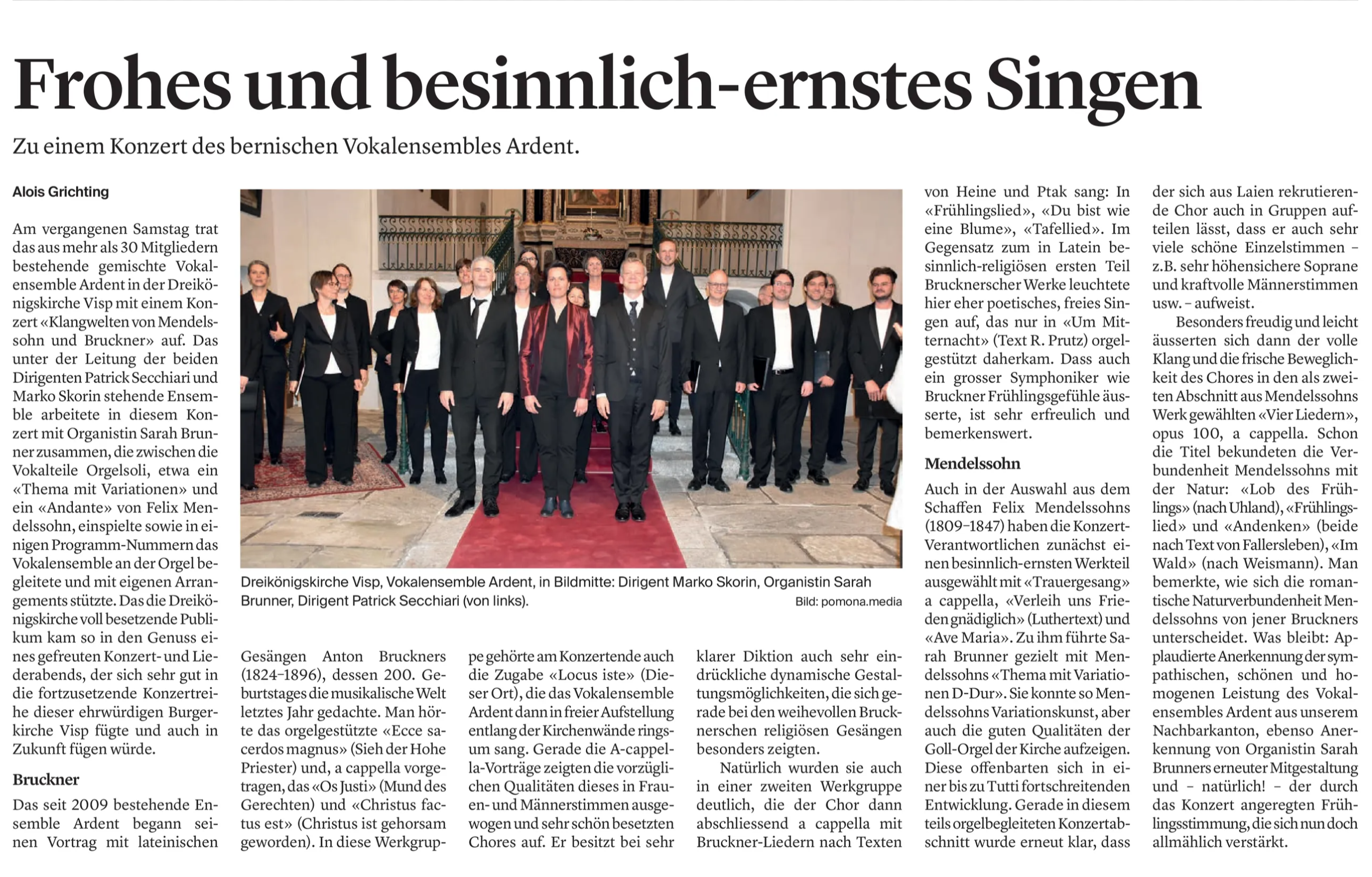 Zu einem Konzert des bernischen Vokalensembles ardent.