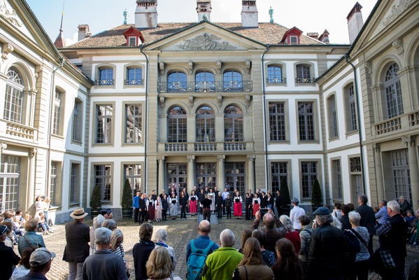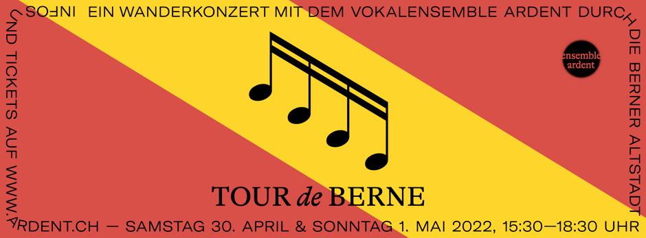 An geschichtsträchtigen Orten in Berns Altstadt lässt das Vokalensemble ardent einen bunten Strauss von Stücken erklingen, welche auf die eine oder andere Art mit der Stadt und ihrer Geschichte verflochten sind. Moritz Achermann gibt Einblicke in spannende Zusammenhänge und verknüpft die Stationen mit anekdotischem Charme — vielfältig, heimelig, überraschend!